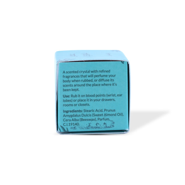 Hold the square-shaped solid crystal perfume and gently rub it on your pulse points - wrists, neck and behind the ears. Reapply as needed throughout the day for a continuous scent.
